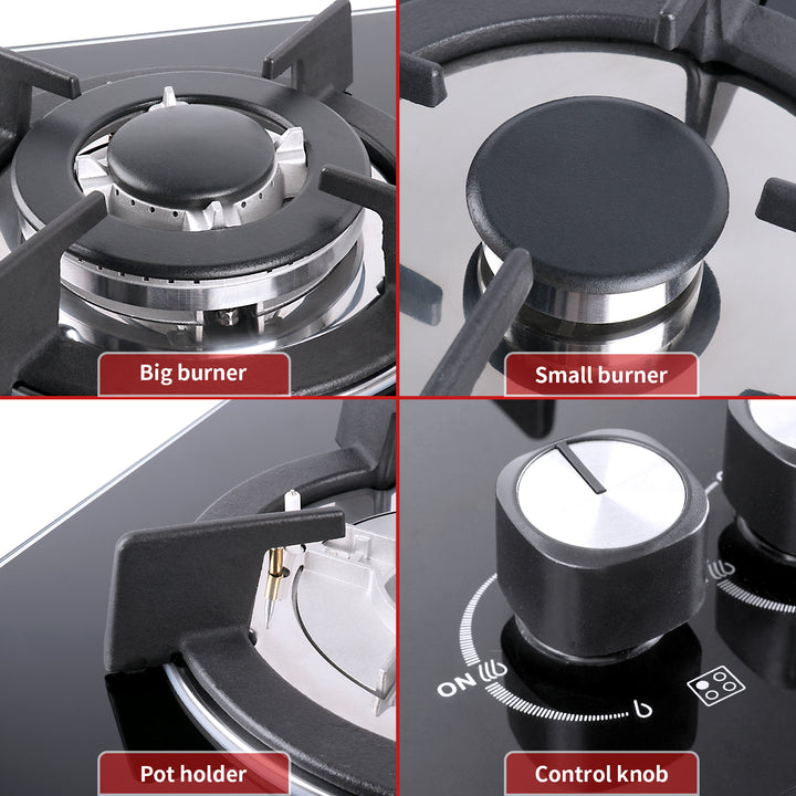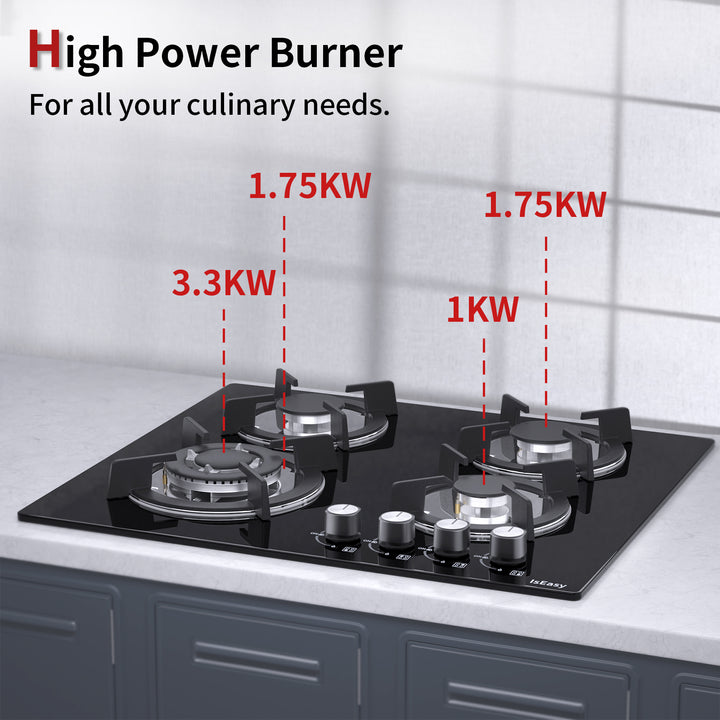 IsEasy 4-Burner Built-in Gas Hob, 24", 7800W, NG/Propane Convertible, Automatic Thermocouple Protection