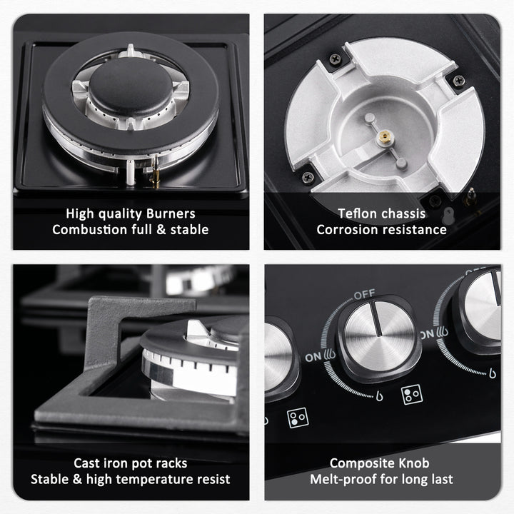 - Durable quality: improved high-performance cast iron pot racks are more stable, so they can support the weight of most pots. Gas hob 3 flames is compatible with all types of cookware.