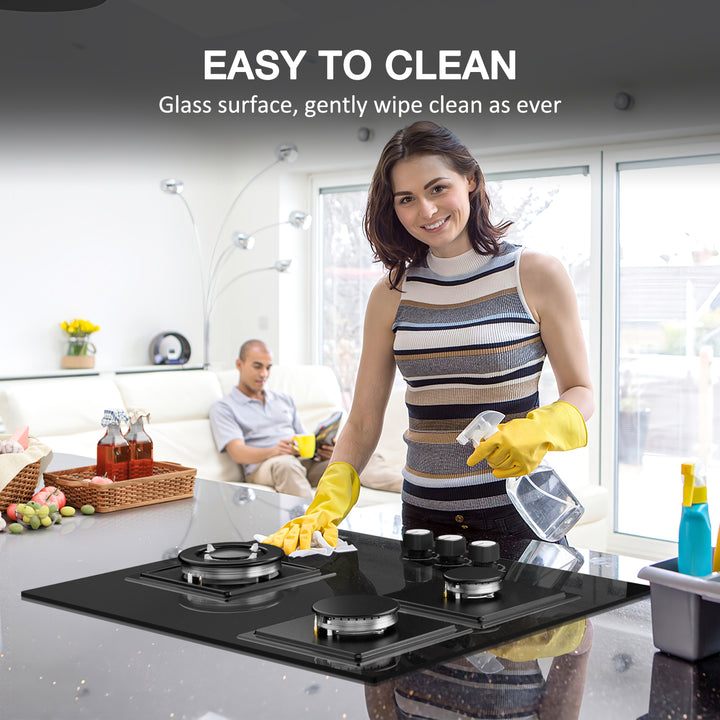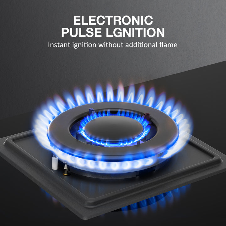 - Effortless cleaning: the surface of the glass gas hob is made of 8 mm tempered safety glass. Pulse ignition: 220-240V Product size: 60 x 52 x 5.5 cm. Cut out size: 56 x 48 cm.