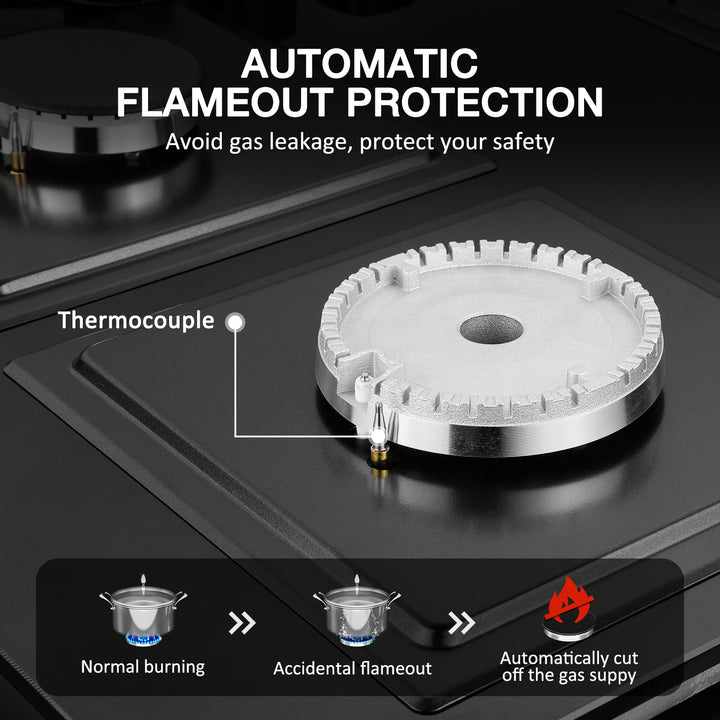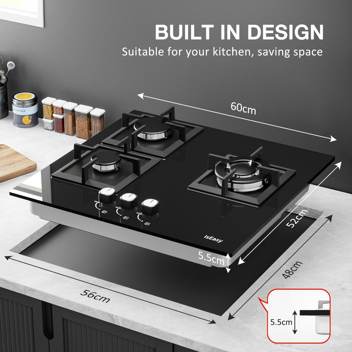 - Safe: the 3-zone glass gas hob has a thermocouple flame failure detection. It automatically switches off the gas when no flame is detected. IsEasy gas hob could be the safety of your family.