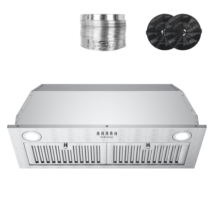 IsEasy 30" Range Hood Insert, 600 CFM, Built-in, Convertible Ducted/Ductless, Stainless Steel, Charcoal Filters & Vent Hose